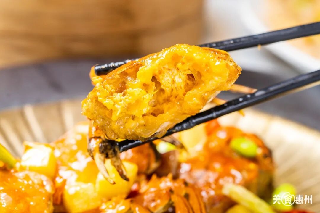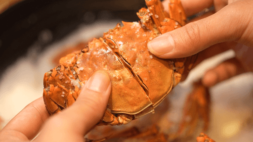 将大闸蟹掰开的那一刻,里面黄灿灿的蟹黄直面扑出,一口咬下去,肥美鲜嫩的蟹肉配上流沙一样的蟹黄,让人欲罢不能,爱蟹党完全没办法忍!