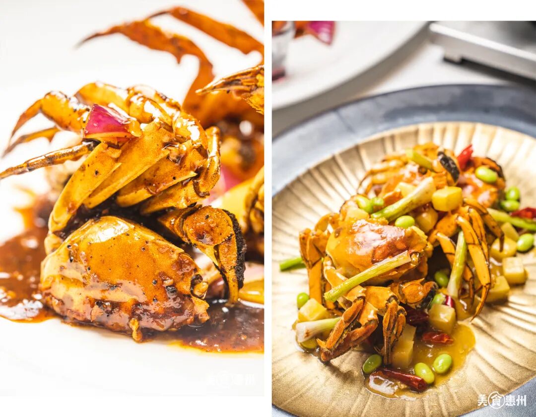 重口味的吃货一定要点这两款!蟹肉覆盖了浓郁的黑胡椒汁,大闸蟹肉眼可见的新鲜,个头超大,香辣并存;还有一口就爱上的姜葱炒蟹,调料激发了螃蟹的鲜美,丝丝入味。