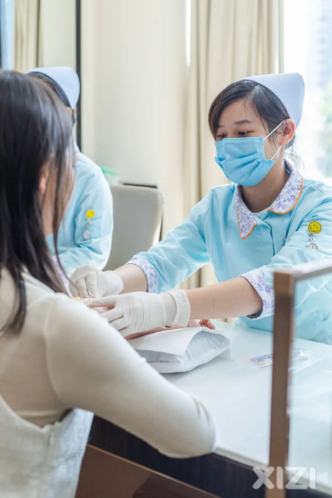 从抽血到量身高体重血压等基础检查,再到彩色超声、胸部正位等身体内部检查,每个项目每个诊室都有特别显眼的牌子标识,不用担心说找不到的问题。据说,这里护师+主管护师就占了护理部 60%左右,整体配置相当之高。