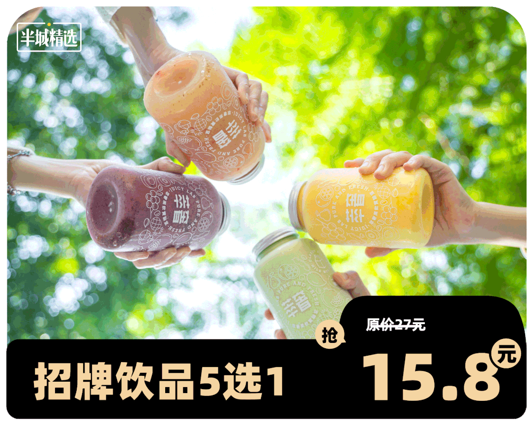 新鲜水果榨取,好喝健康无负担!15.8元抢饮品券5选1:芒果卡士、番石榴柠檬、暖暖玉米汁、玲珑水果茶、百香果柠檬茶!