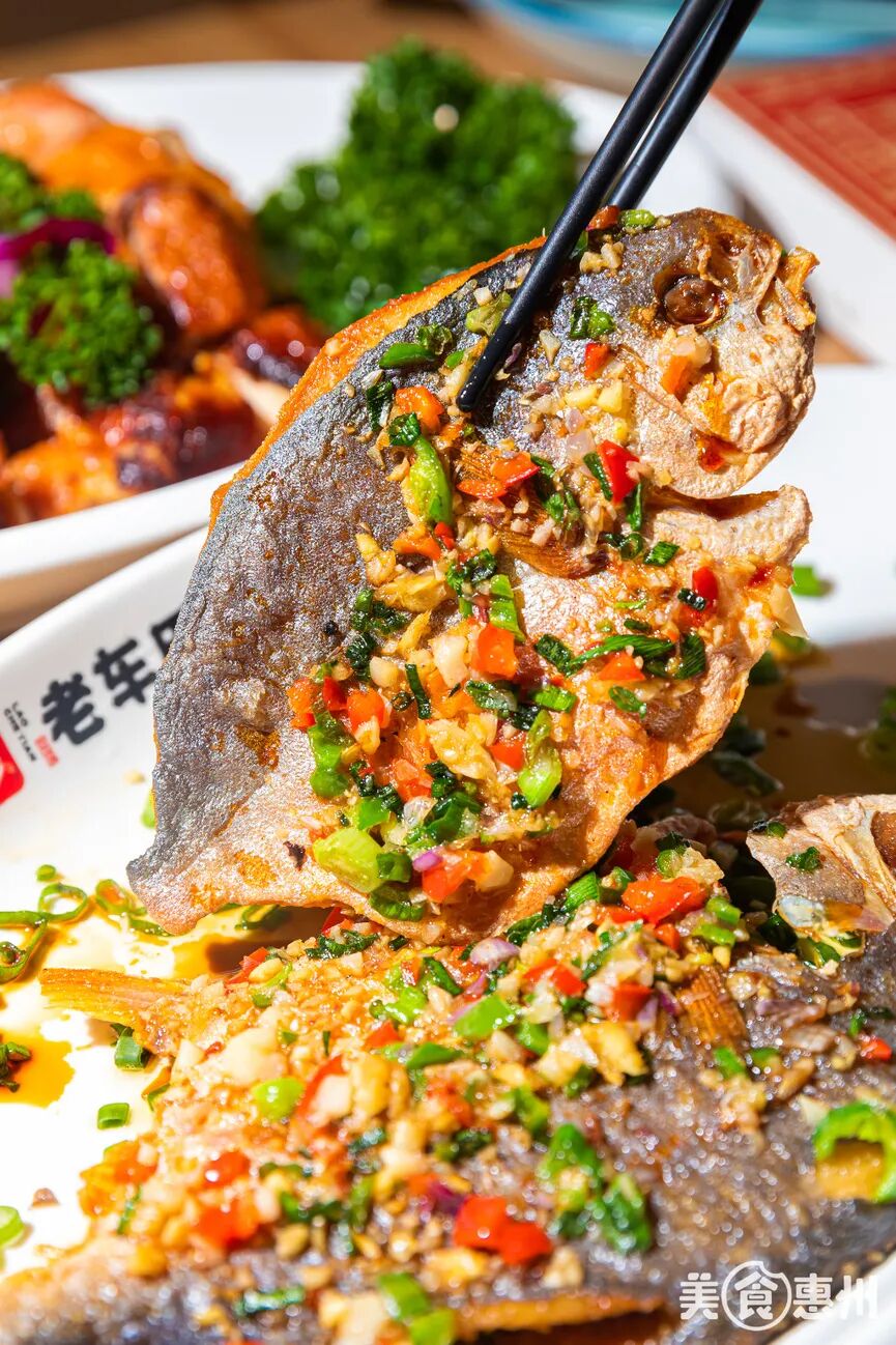 香煎金鲳鱼、客家咸菜炒花肉