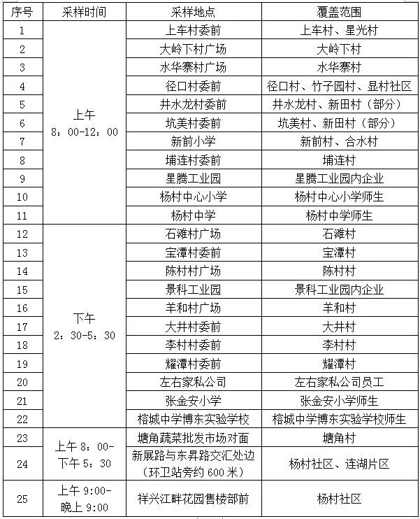 共设置26个采样点,请广大市民合理安排时间,就近前往。