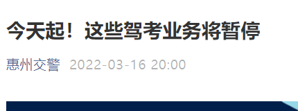 一、2022年3月16日起,暂停惠安考场初学(增驾)科目一理论考试和满分审验教育现场学习及满分考试业务,恢复考试时间另行通知。大中型客货车实习期满考试、驾驶证过期恢复、军警和境外人员换证的理论考试,以及科目二、科目三道路技能、科目三安全文明考试业务正常开展。