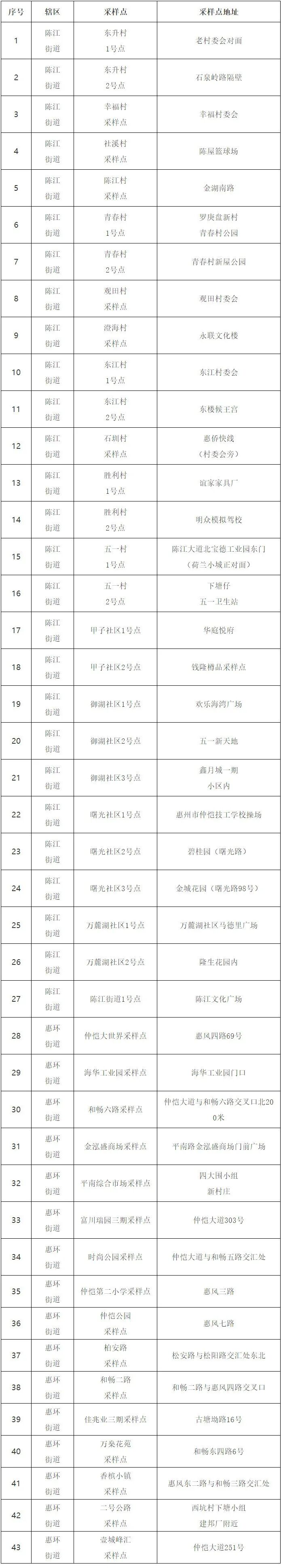 共设置43个采样点,请广大市民合理安排时间,就近前往。