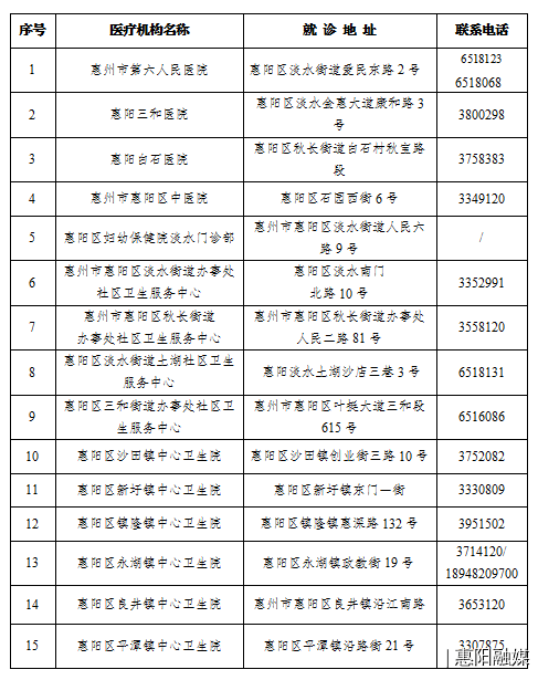 17:30-19:30 惠州市第六人民医院核酸采样点
