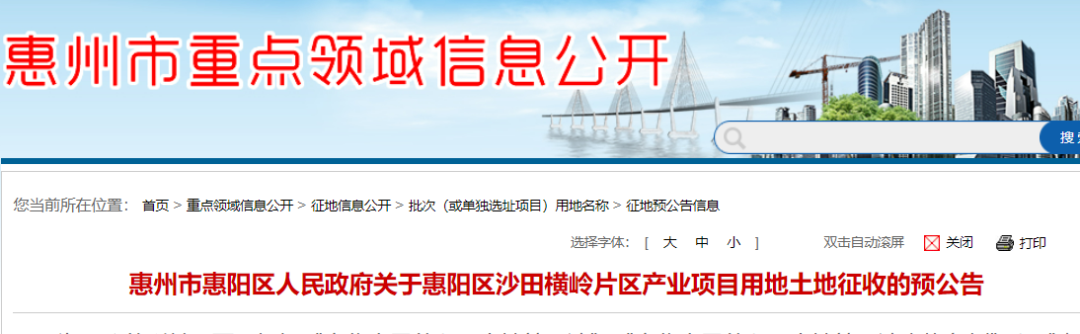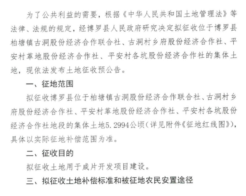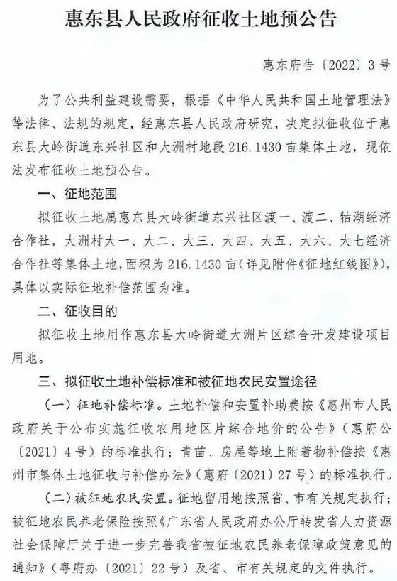 为了公共利益需要,根据《中华人民共和国土地管理法》《中华人民共和国土地管理法实施条例》和《惠州市集体土地征收与补偿办法》(惠府〔2021〕27号)等法律法规的规定,区政府研究决定,拟征收位于沙田镇肖屋村、田头村地段的167.859亩集体土地,现依法发布土地征收预公告。