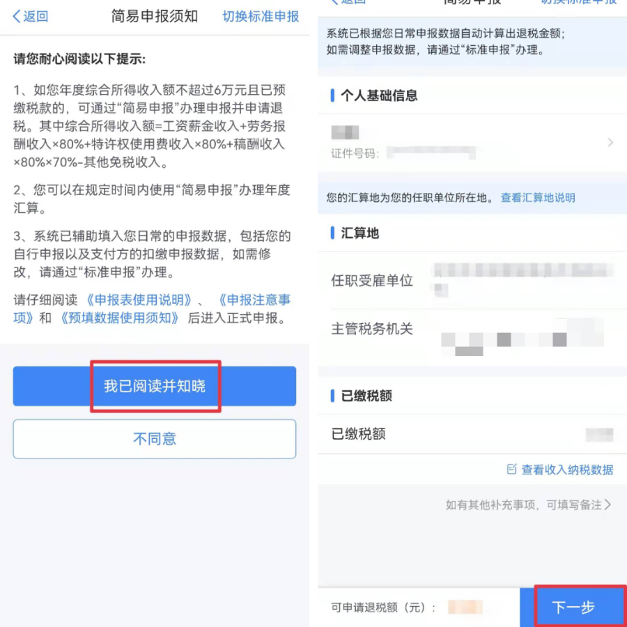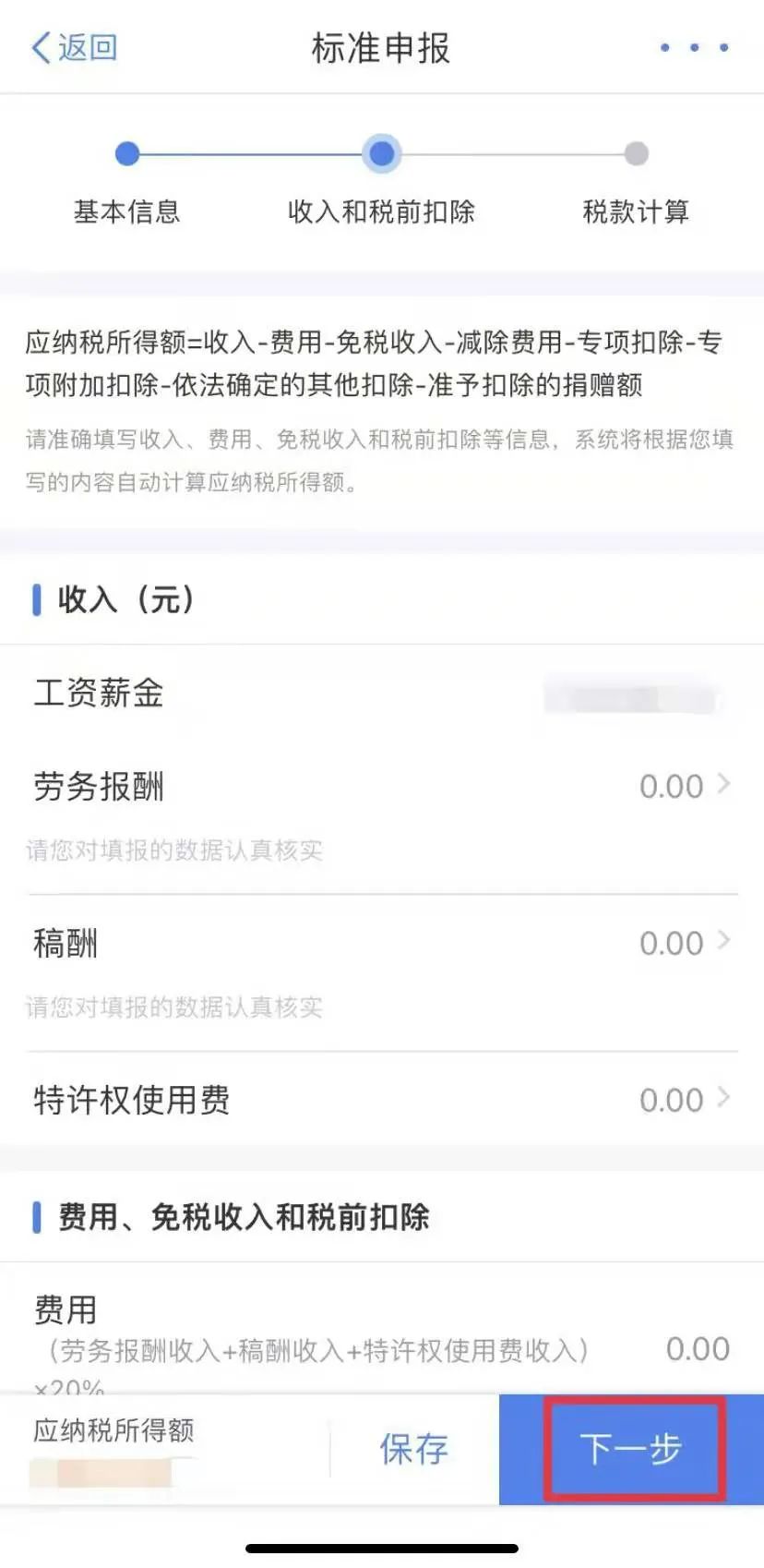 继续确认应纳税额,数据系统将自动计算您本年度综合所得应补(退)税额,确认无误后点击【下一步】