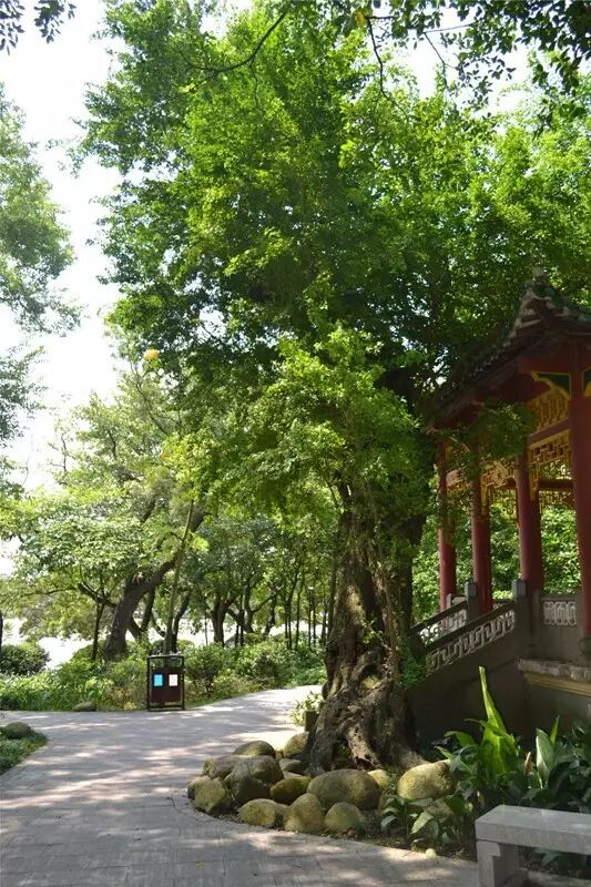 西湖中绿宝石一般的小岛“点翠洲”,抵得上一个植物园。树龄110多年的细叶榕,150年的岭南酸枣,100多年的水翁,100多年的乌桕,约110年的秋枫等等。惠州最老的牛蹄豆也在此处,已有110多岁。在点翠洲还可见到有趣的树木“吊瓜”,“瓜”尺余长、碗口粗、吊挂枝头,观果期长。这些树木长者镇守西湖,让西湖更显秀邃幽深,天成妙景。