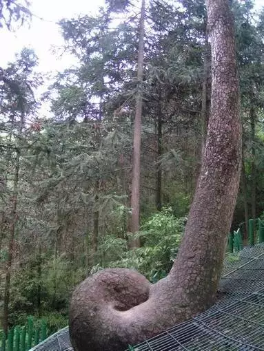 龙门县南昆山的“蛇松”,其树皮为红褐色鳞片状,树干基部在地面盘成一圈后高高翘起,直指云天,形如“巨蟒”,故称“蛇松”。