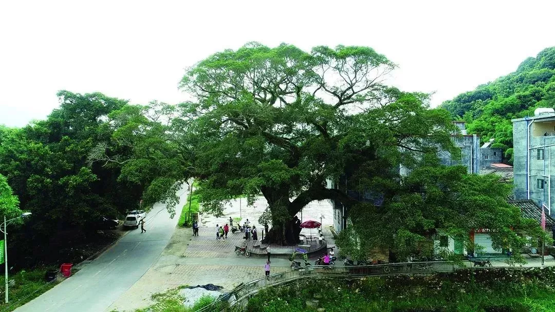 在龙门县麻榨镇中心村乡道的路旁有一棵历史悠久的古榕树,古榕树树干粗壮,树冠犹如一把巨大的伞,枝条弯似虬龙曲如长蛇。据记载,这棵古榕树树龄达1010多年。古榕树撑起绿荫华盖荫护过往的人们,人们对古榕树充满敬畏、十分爱护,为了保护古树,村民都会自觉维护古树周边的环境卫生。