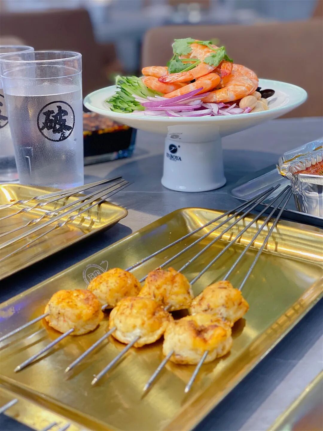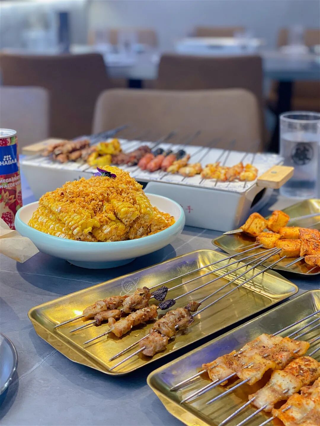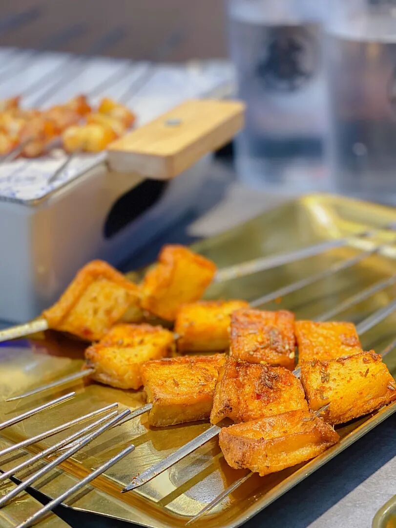 烤鱼豆腐、专业五花肉、黄金六两,经过烤制,裹上了一层金黄油亮的光泽。浓郁的鲜香从入口的瞬间,各种滋味在嘴里千转百回,激活了身体每一个沉睡的细胞。