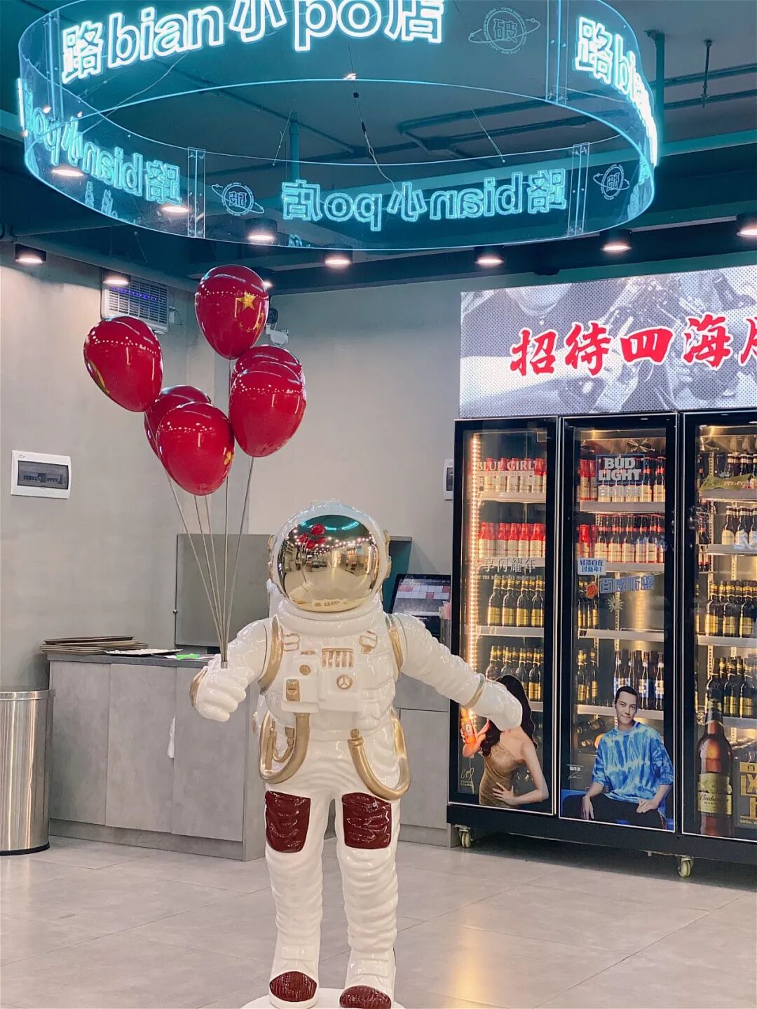 步入餐厅内,显眼的太空人模型,随拍出片。以太空灰为主色调,空间明亮。太空舱主题赛博朋克范十足,科技感一整个就是爱住了。