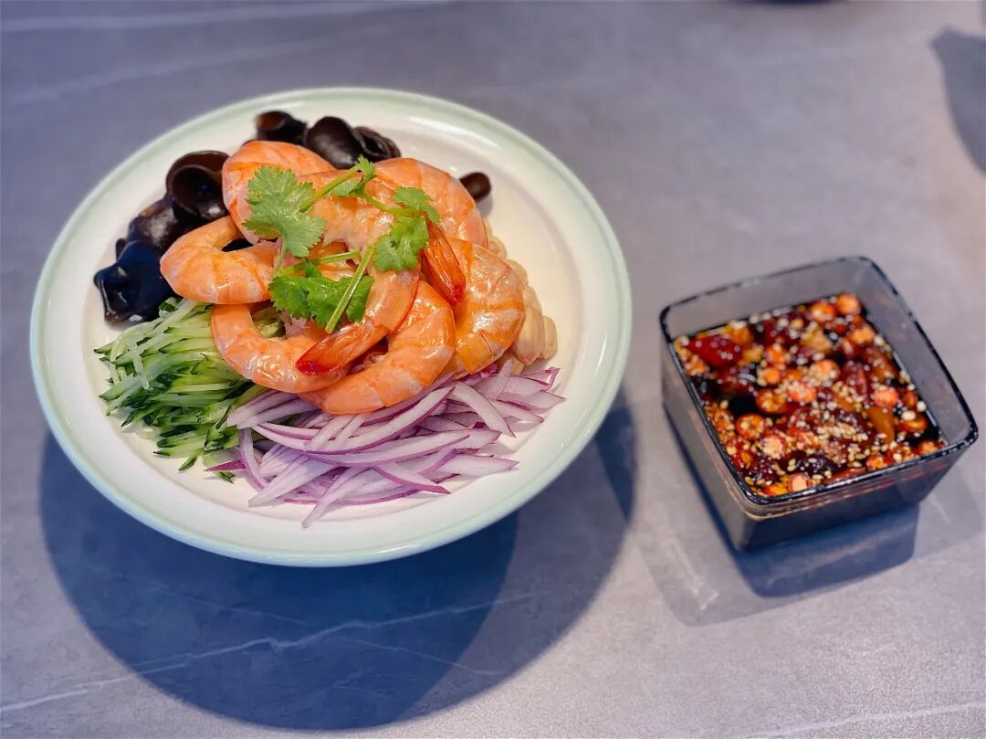 时蔬中搭配虾仁,入口轻飘飘又很实在。清爽解腻的轻盈口感,与烤串非常搭。悠长的滋味沁人心脾,多重的口感在唇齿间徘徊,激起一层荡漾。