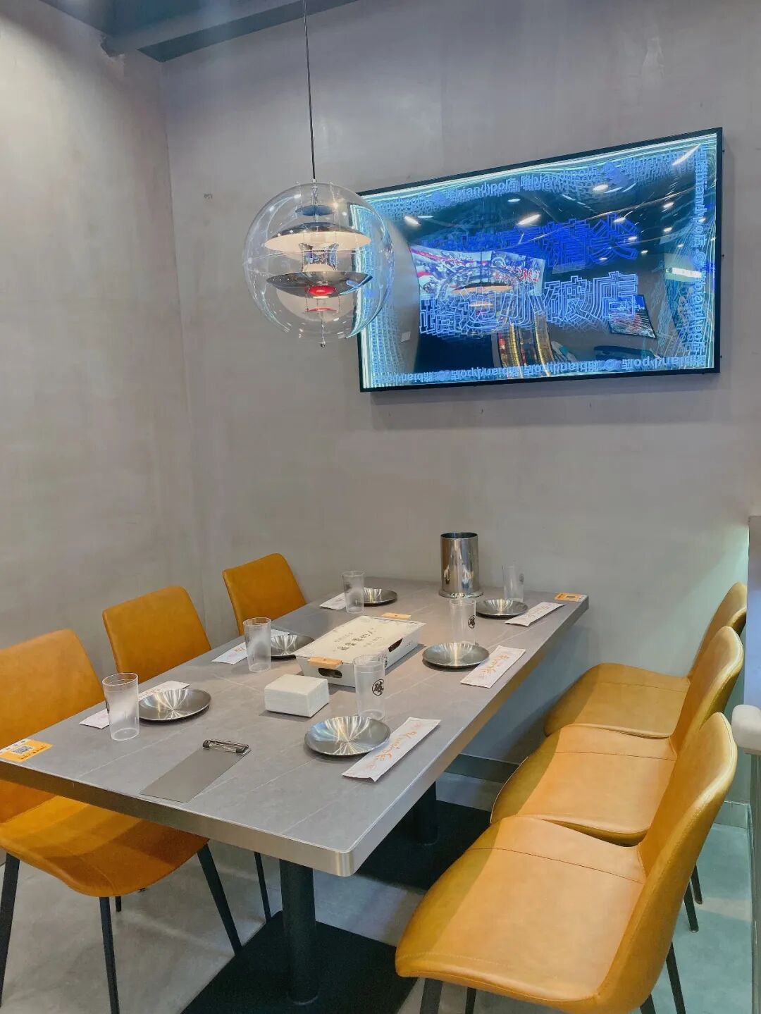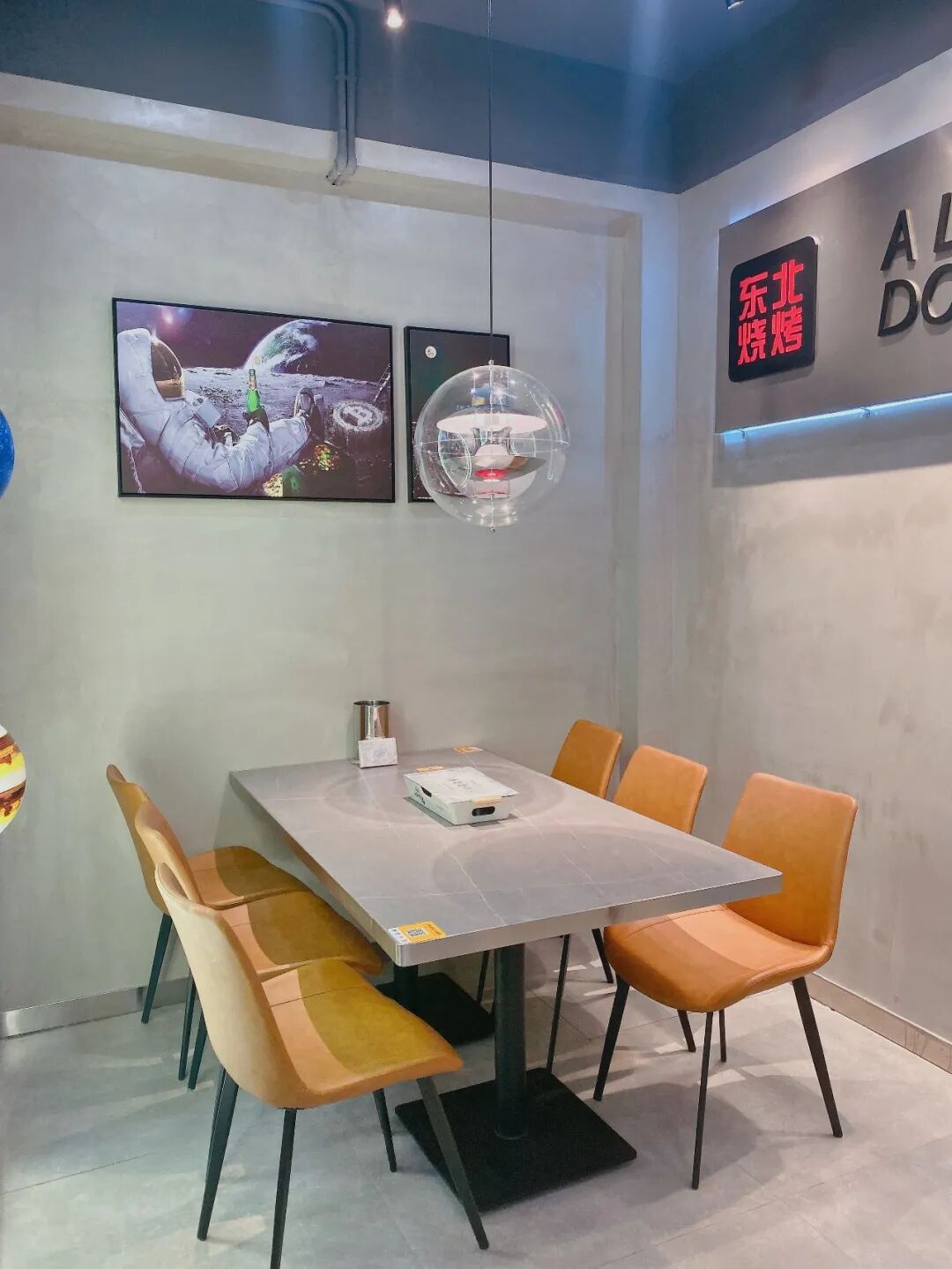用视觉,探索烤串店的颜值天花板。以科技感为设计灵感,整间门店像是一个太空舱。太空灰的墙面如同月球表面,进店就仿佛遨游外太空,沉浸式体验感非常足。