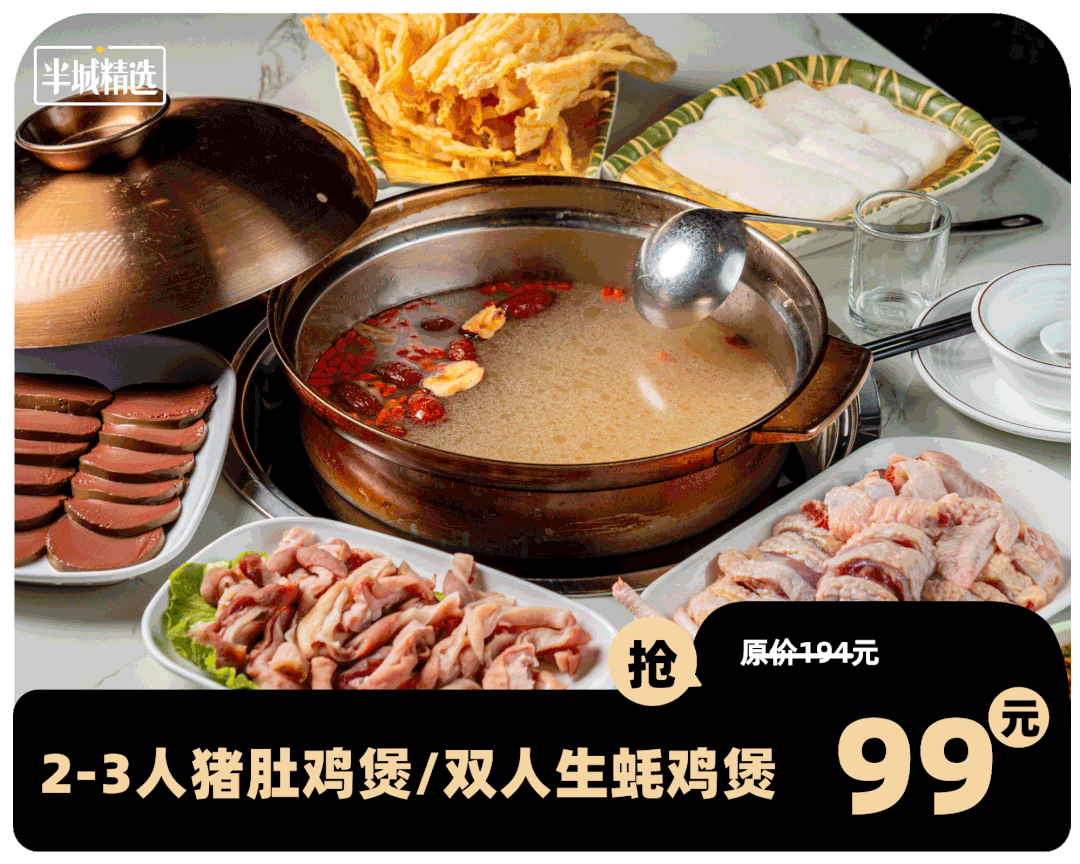99元享2-3人猪肚鸡煲/生蚝鸡煲套餐,养生五指毛桃汤底,优选走地鸡!搭配多种配菜,蚝肥鸡嫩汤美,一碗从胃暖到心~