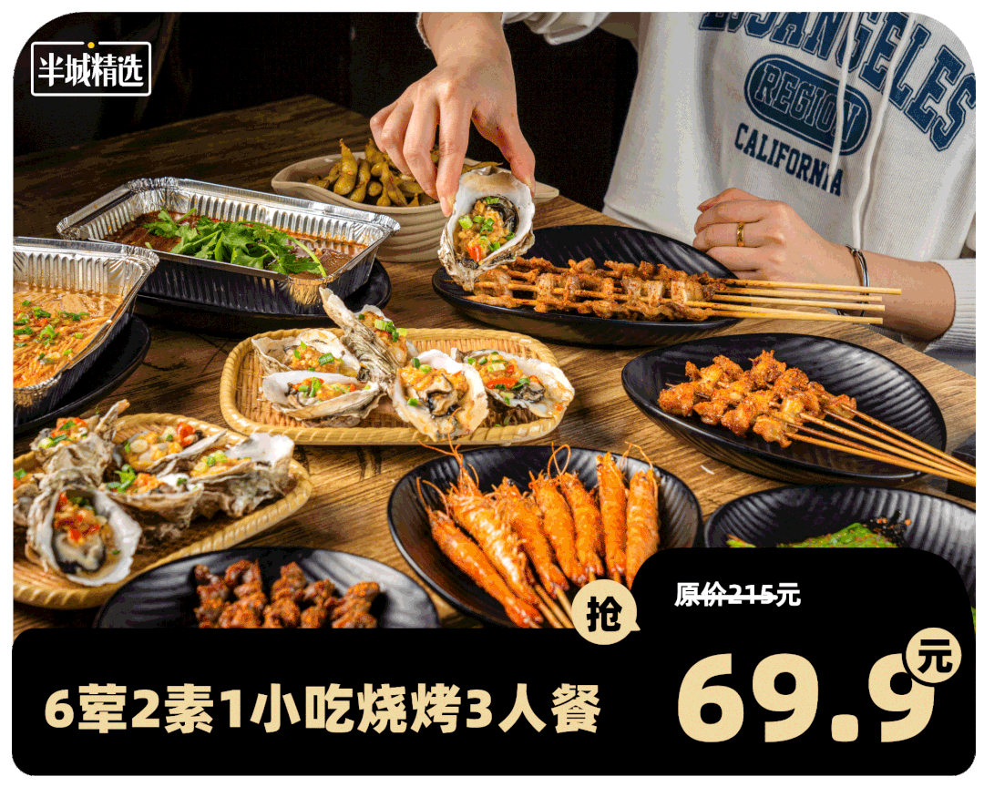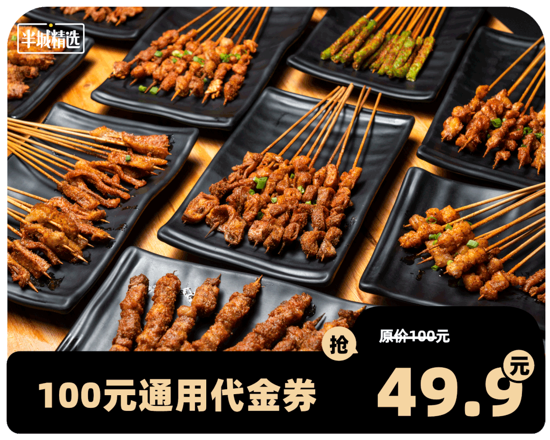 49.9元抵100元代金劵!牛肉串、五花肉、烤鸡中翅…一次吃到爽,还有360°露天烧烤台!