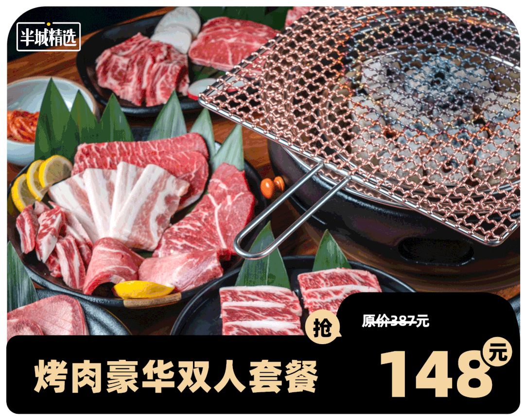 148元抢5荤2素2主食豪华双人套餐:葱香爆汁牛肉粒、厚切猪脑花、藤椒鸡腿肉、还有照烧鸡腿饭…享烤肉盛宴,人气菜品一网打尽!