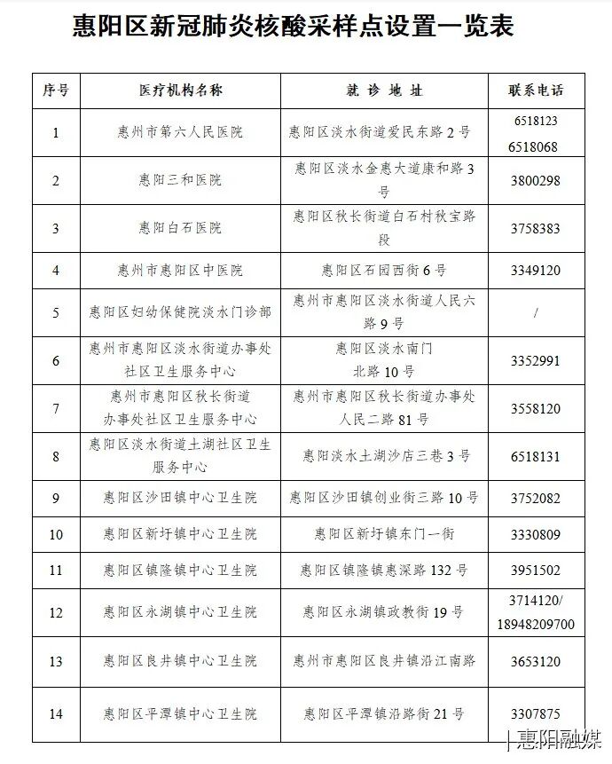 22:10-22:29 惠州南站核酸采样点(淡水街道办惠州南站);