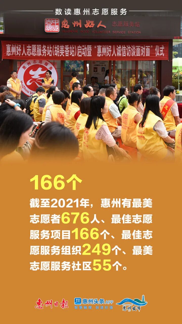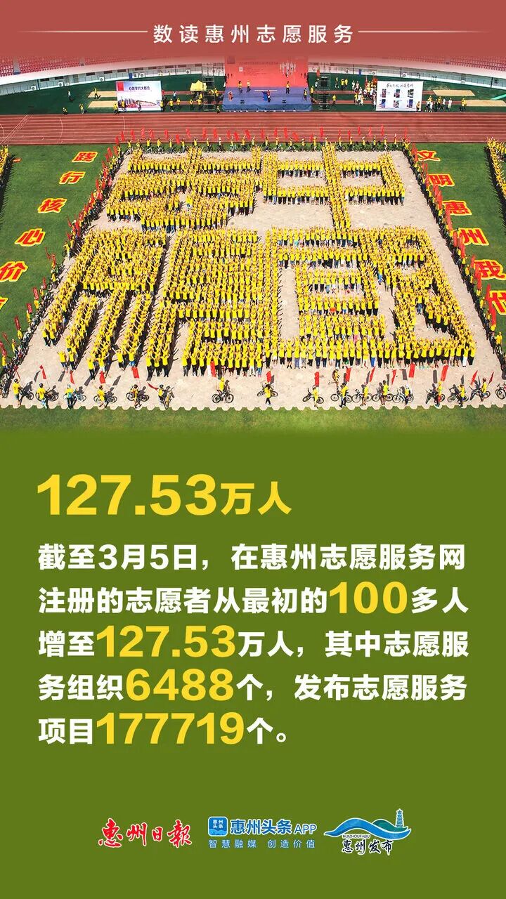 截至目前,全市注册志愿者超过127万人,按第七次全国人口普查公报惠州常住人口604万人计算,每4.8个惠州常住人口中就有一个是志愿者,这个数据每天都在增长。