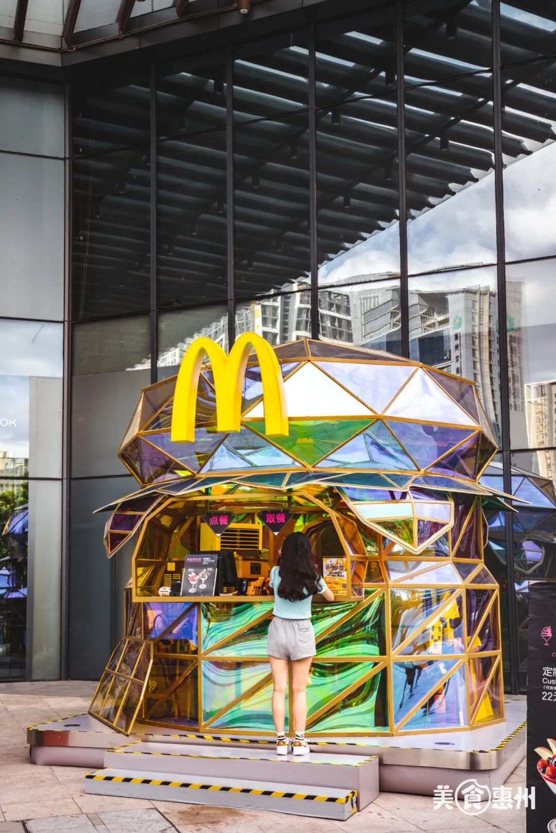 麦当劳快闪店终于来惠州了!这次的造型是「镭射汉堡主题」,可以一边吃新地一边逛商场玩耍了。就在佳兆业广场大门口处向你招手:嘿!出门!来玩!
