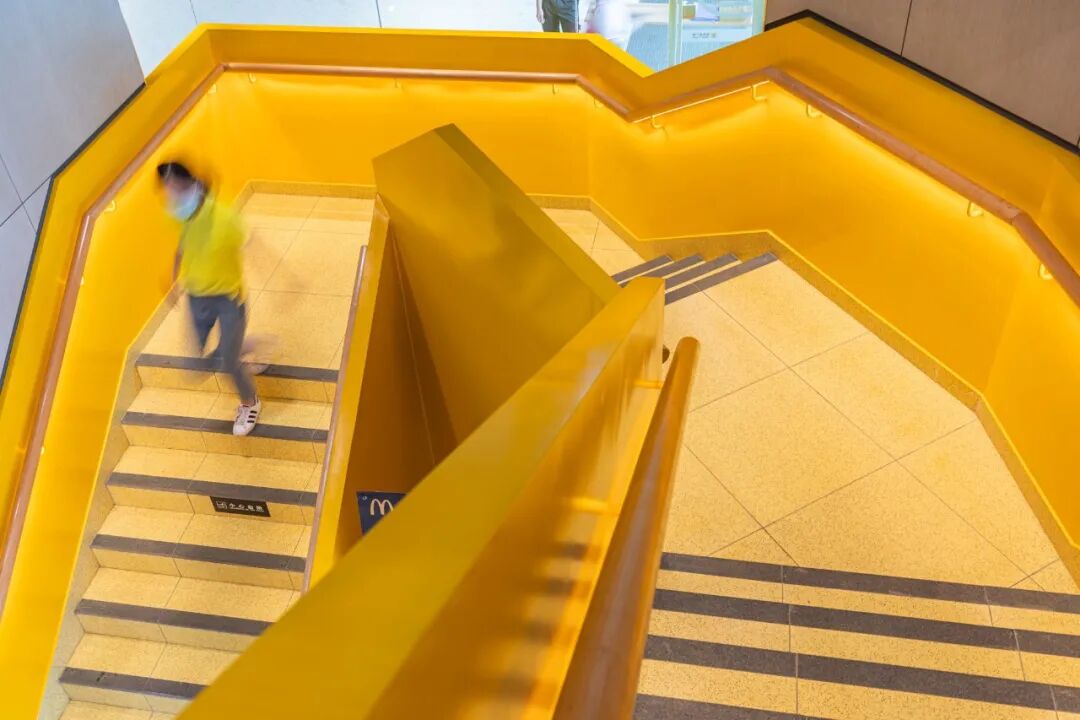 色调方面采用了当下新潮的镭射,工业风钢架结构,“赛博朋克”的即视感。白天在阳光的折射下,散发出彩虹般的光芒,仿佛离天空的距离也更近了。