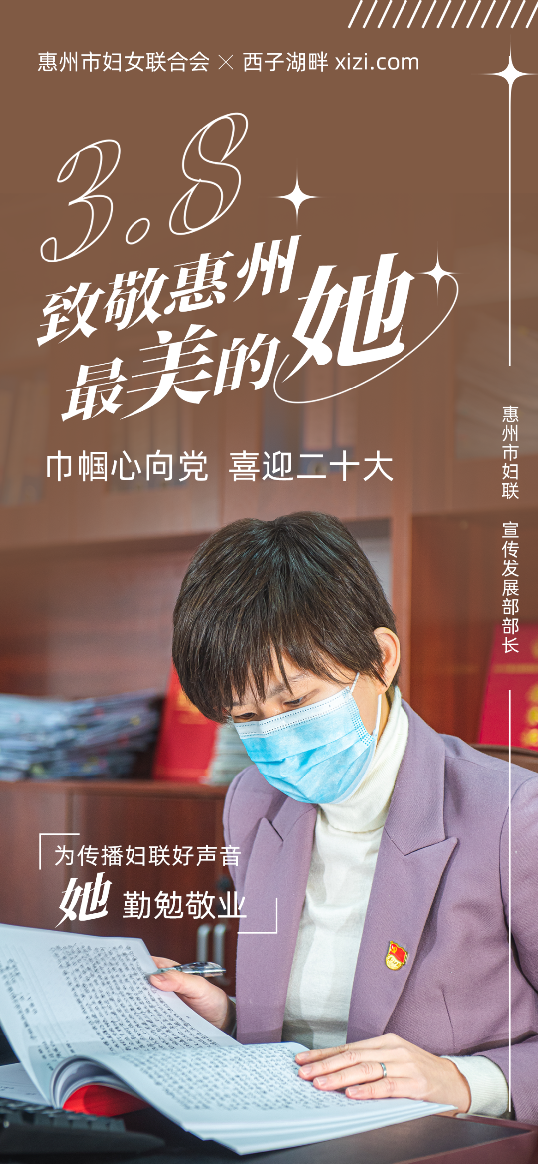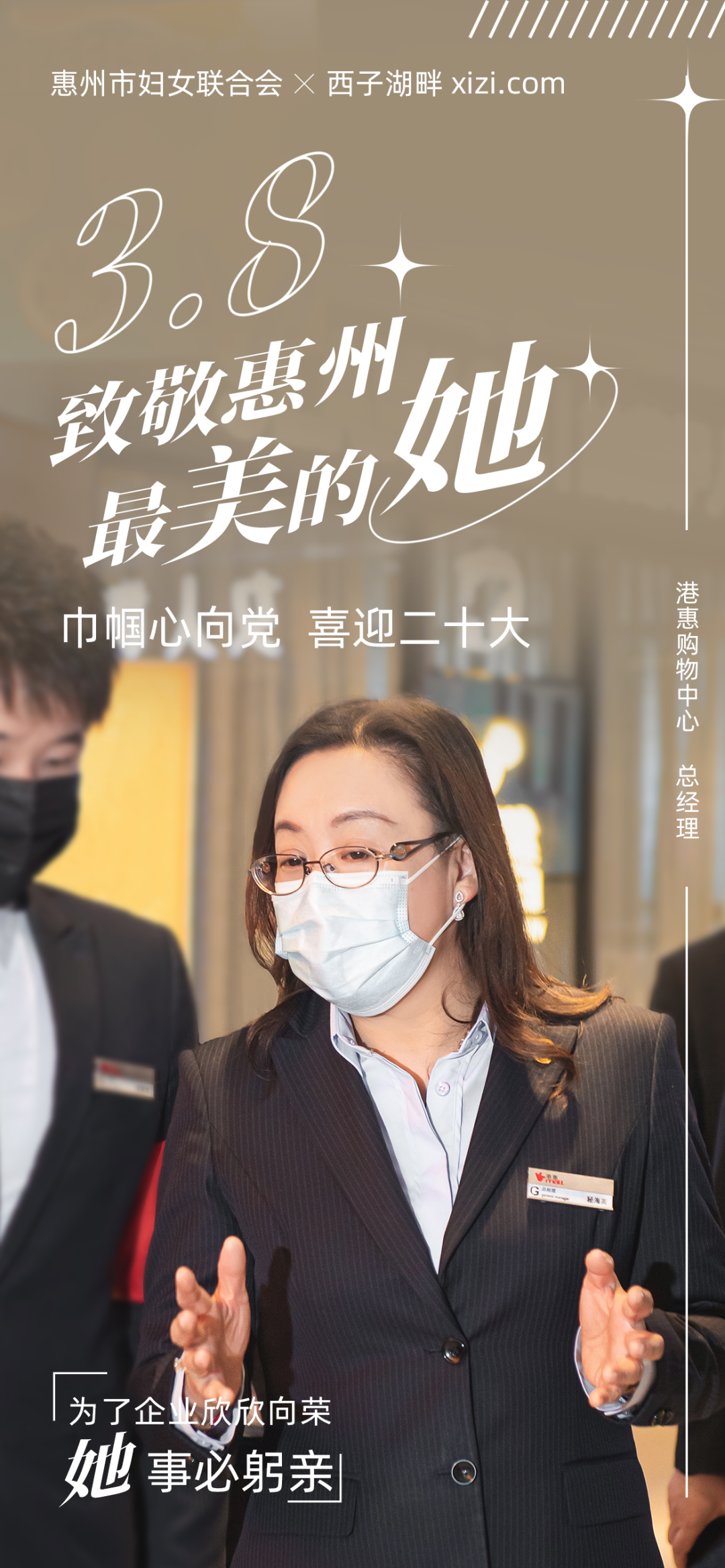 凝聚巾帼之力,激扬巾帼之志,为庆祝女性在经济、政治和社会等领域做出的重要贡献和取得的成就,特在此致敬惠州的女神们!