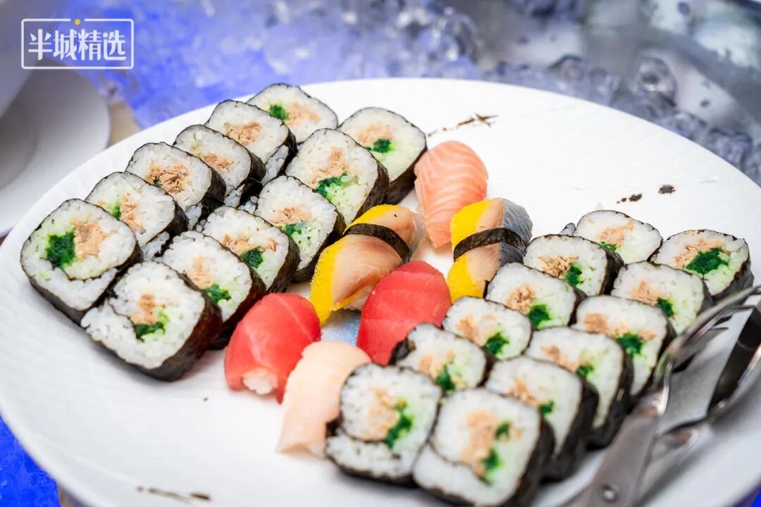 喜欢日式料理的食客还有寿司区域,这里的寿司不定时更新款式,依旧用料都很足,口感很是丰富。