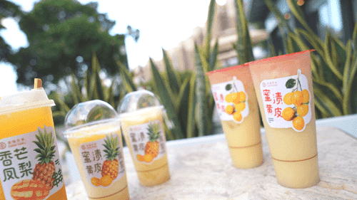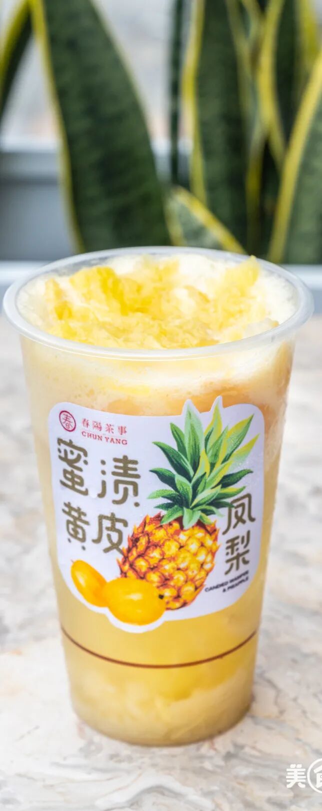 满杯的“金黄”,散发热带水果独有的魅力,凤梨和黄皮的新cp会是耀眼的亮点。