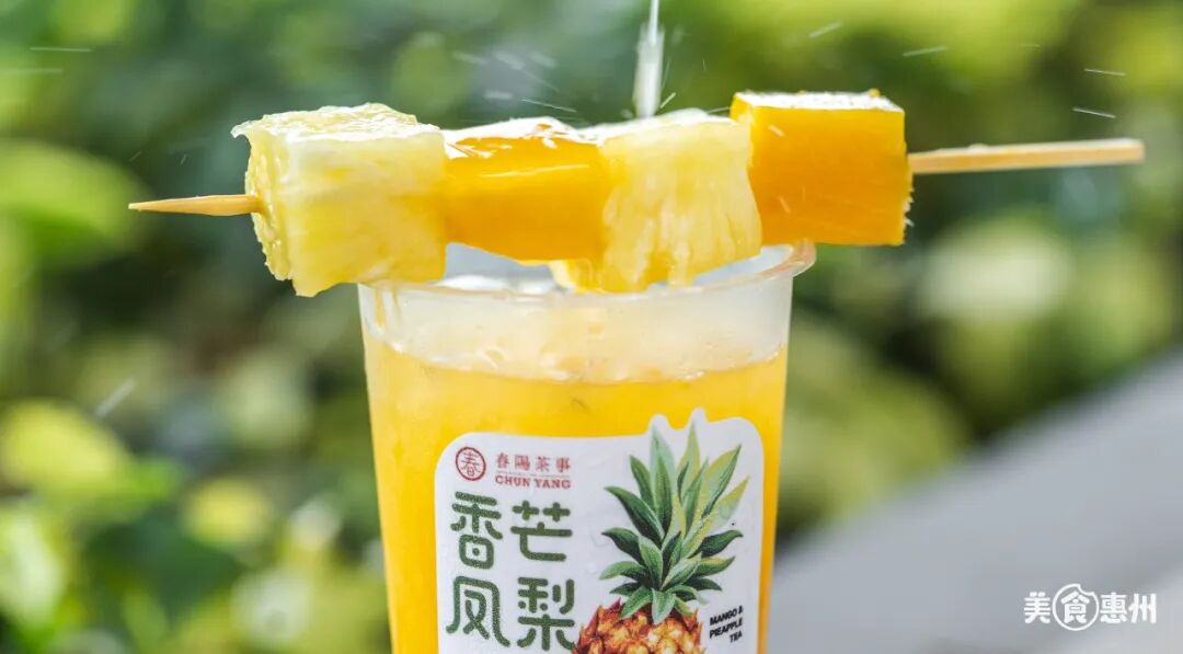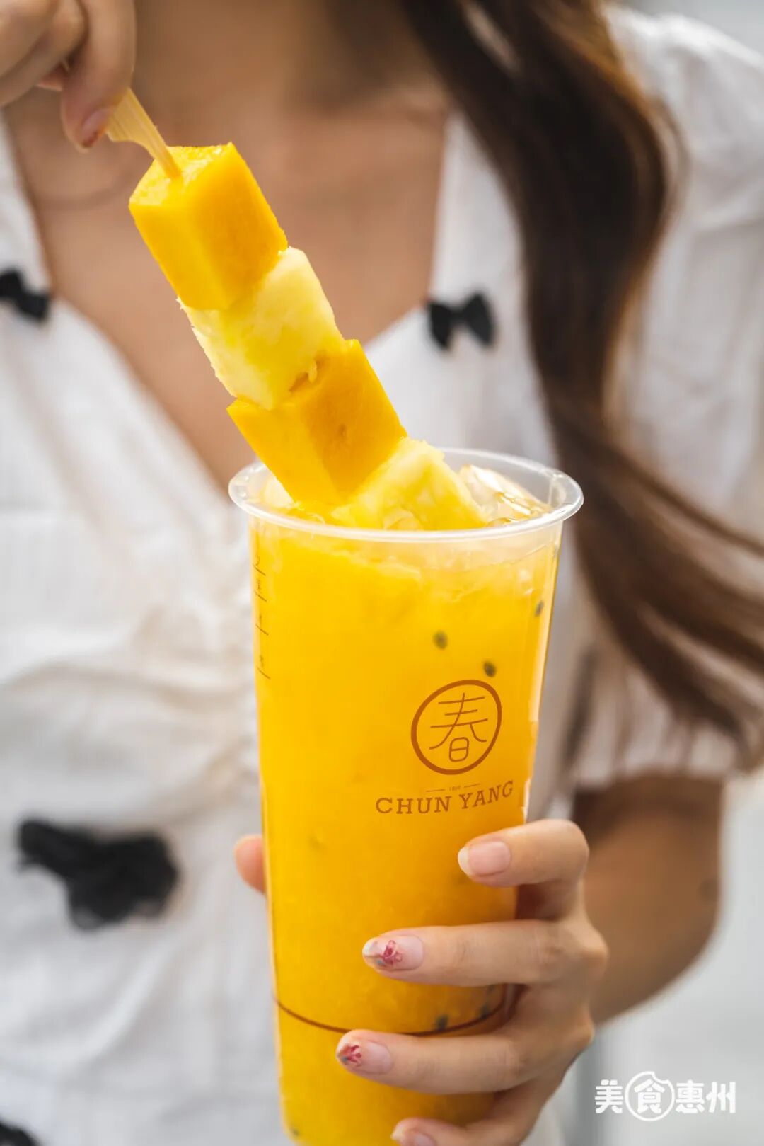 选用新鲜凤梨和芒果爆锤而成,不需要咀嚼就能吸到满口的果肉,再加入百香果并倒入茶底,茶香和果香糅合的恰到好处。