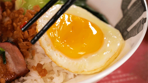 duang感十足的太阳蛋、外焦脆内嫩的叉烧,就是那碗美味到评委们潸然泪下的黯然销魂饭。这只半熟的太阳蛋,魅力值同样爆表,轻轻一戳,蛋液像泥石流一般,疯狂地渗进底层的米饭里,这谁能顶得顺哇~
