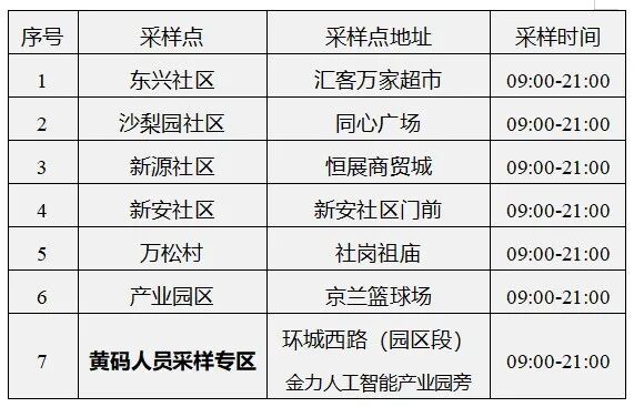 全街道共设7个核酸采样点(详见下图),请广大群众自行有序前往采样点采样。