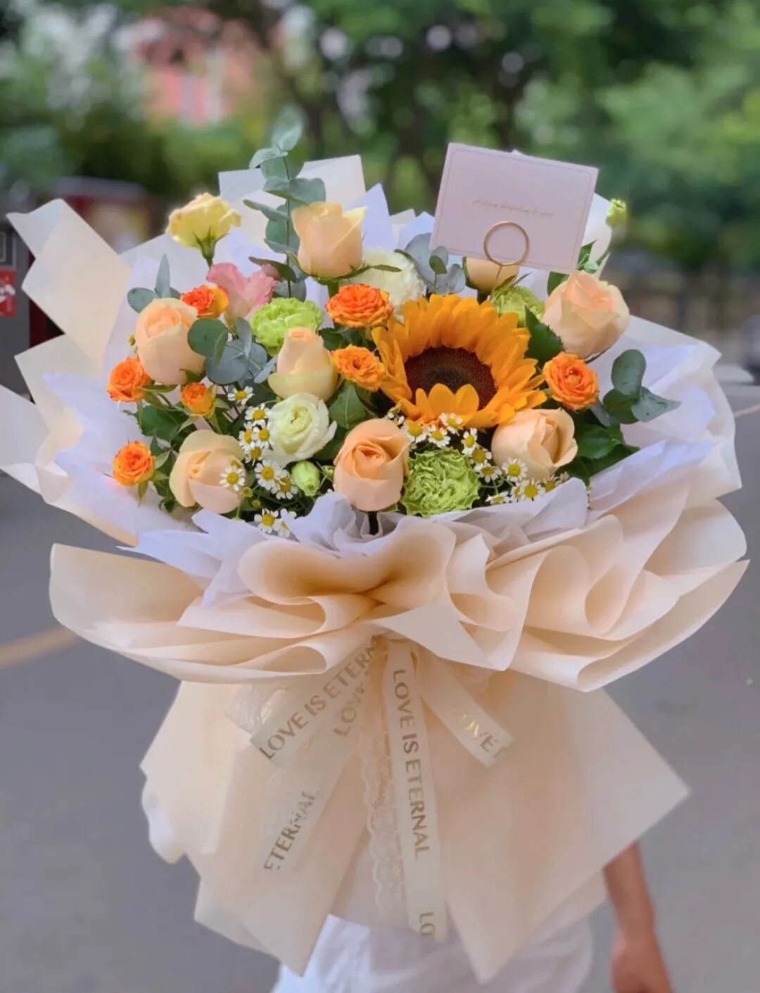 把大红花束送到你手上