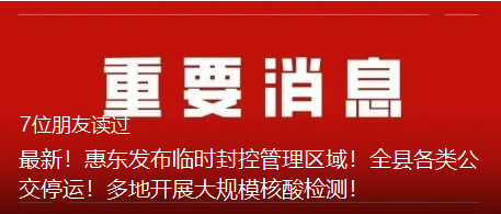 跟大家提到了惠东封控及管控区域