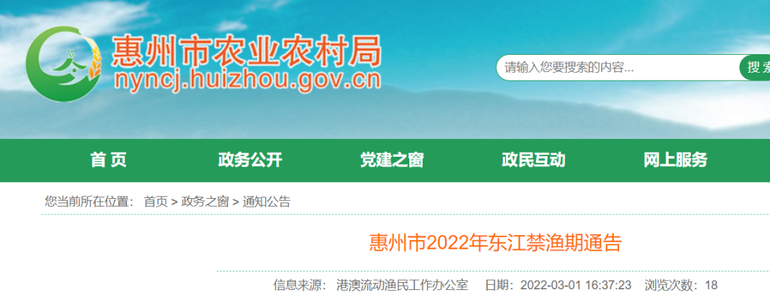 为进一步加强对我市东江水域渔业资源的保护,维护水域生态环境,促进现代渔业可持续发展,现将我市2022年东江禁渔期有关事项,通告如下: