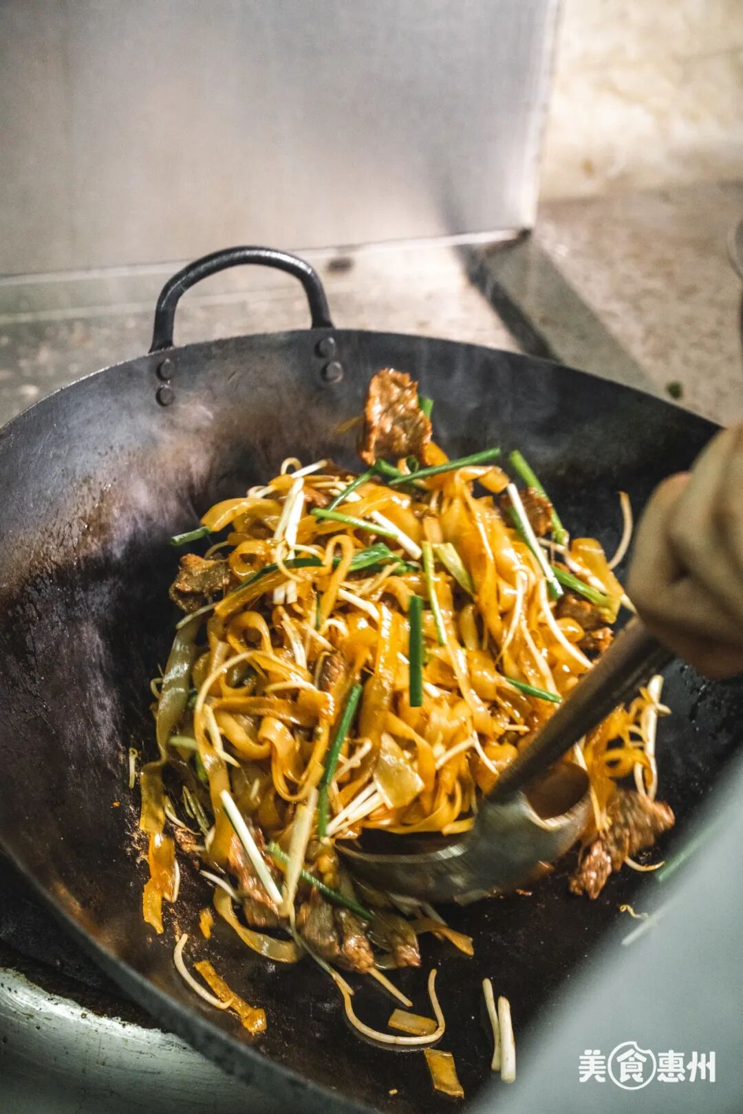 大火烹制的干炒牛河是满满的“锅气”。油润锅之后大火爆炒牛肉,再将其捞出倒入配菜翻炒,加入河粉和调料之后色和香展现出来,最后再把牛肉放入一同烧制。干炒牛河的魅力,也是势不可挡的。