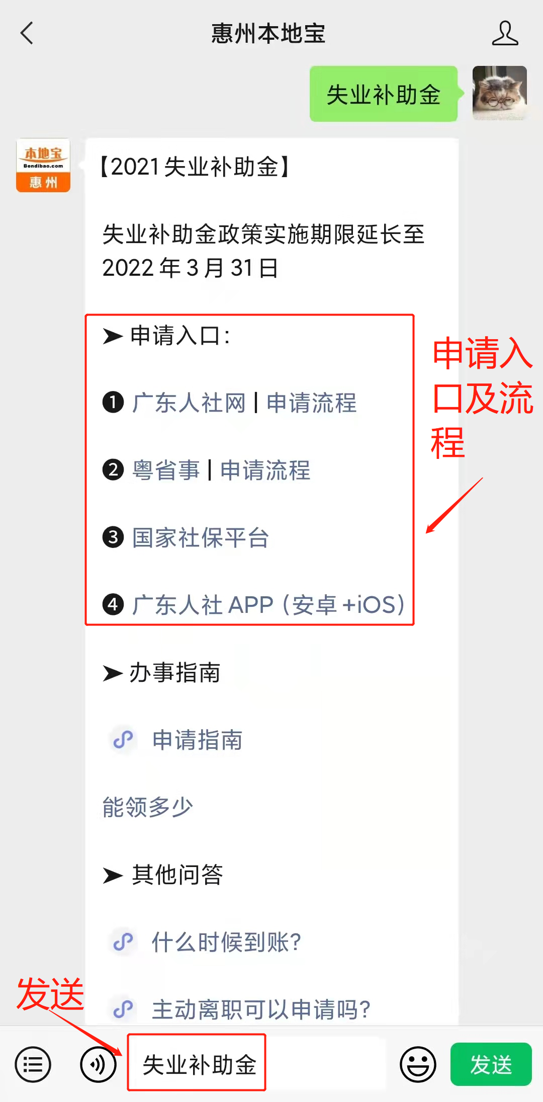 “粤省事”微信小程序、广东人社APP、广东省人力资源和社会保障网上服务平台、国家社会保险公共服务平台、社保经办机构前台,在“惠州本地宝”微信公众号聊天对话框回复【失业补助金】,即可获取惠州失业补助金网上办理入口、详细的办理指南、以及后续最新消息等等。