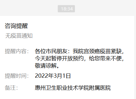 3月1日起暂停开放宫颈癌疫苗预约!