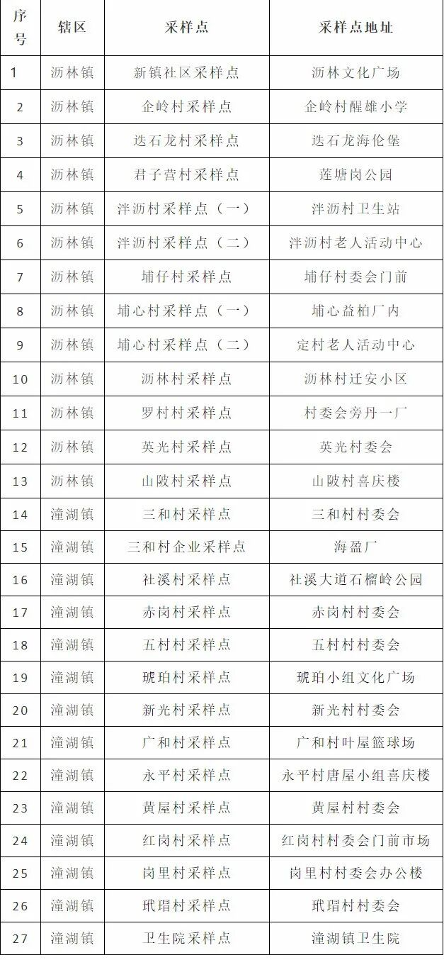沥林镇设置13个核酸采样点,潼湖镇设置14个核酸采样点,请广大市民合理安排时间,就近前往。