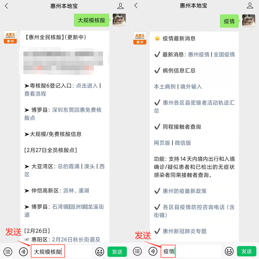 ?小编提示:点击下方公众号名片,在“惠州本地宝”公众号微信对话框回复【大规模核酸】,即可获取“粤核酸6”小程序入口、惠州全员/大规模核酸检测时间及地点等等。回复【疫情】即可查看惠州疫情最新消息、密接者活动轨迹信息(更新中)、防控咨询电话等等。