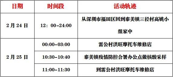 泰美镇防控办现公布一名密切接触者在我镇的活动轨迹排查情况,如在以下时间段有到过相关区域与该密接人员存在同时空接触的,请按相应要求自觉落实防控措施并尽快开展1次核酸检测。