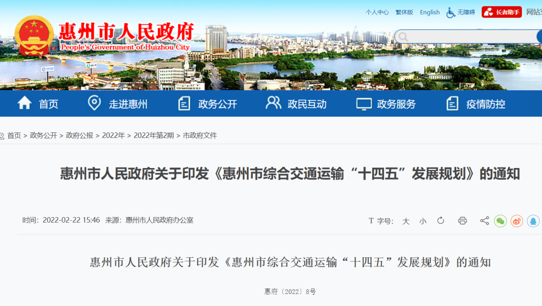 戳原文,查惠州综合交通运输“十四五”发展规划全文