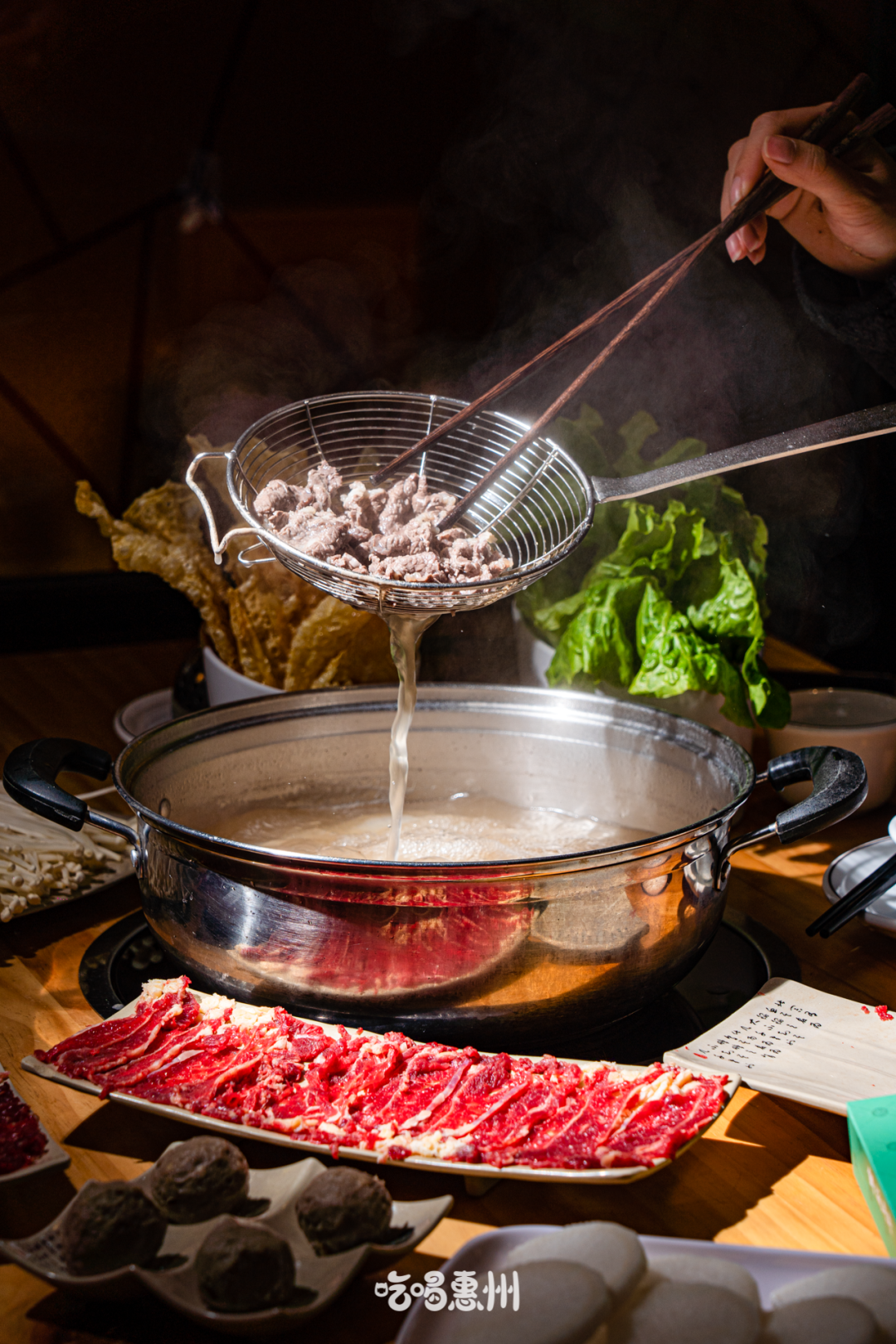 嫩肉的口感软嫩可口,瘦中带肥,颜色特别深红,涮上几秒即可,配上灵魂沙茶酱简直一绝!