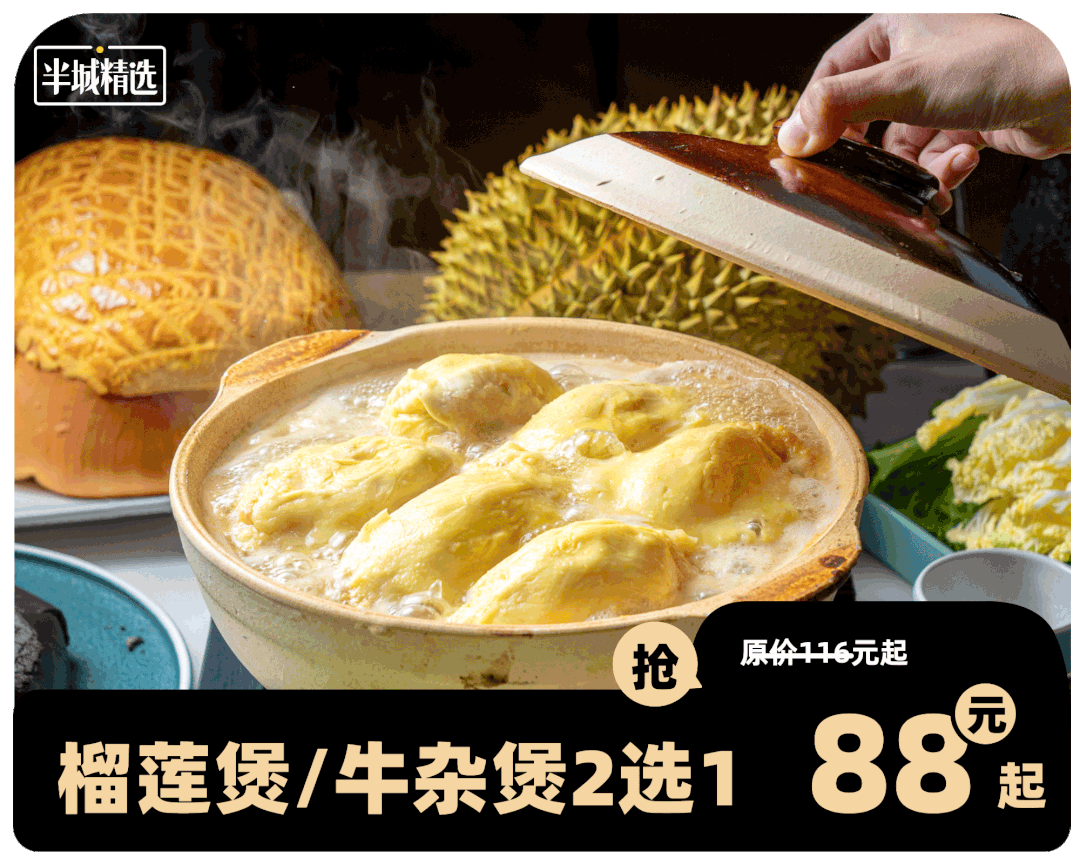 榴莲控必去的慕凤凰榴莲餐厅,88元起享榴莲煲/牛杂煲2选1,午市专享!探榴莲界的天花板,绝对逃不过真香定律!