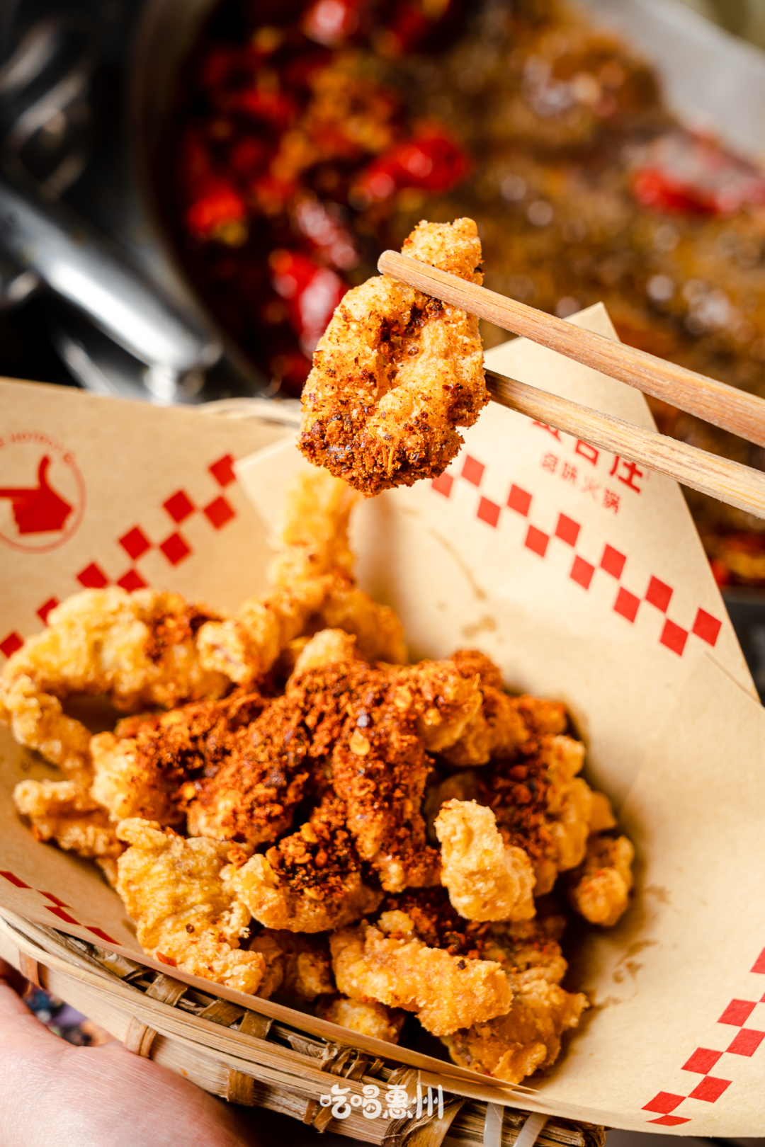 火锅的灵魂配菜,「手摇小酥肉」,撒上干料之后,麻辣鲜香,一口一个完全停不下来!