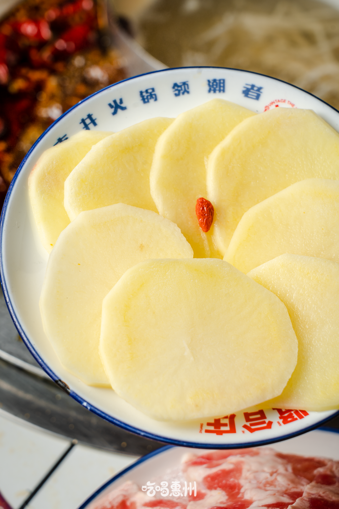 有谁跟我一样,点鸳鸯锅的意义就是为了涮点蔬菜吃吃,腐竹、娃娃菜、金针菇、土豆片,一份套餐里4种蔬菜,满足所有的广东人。