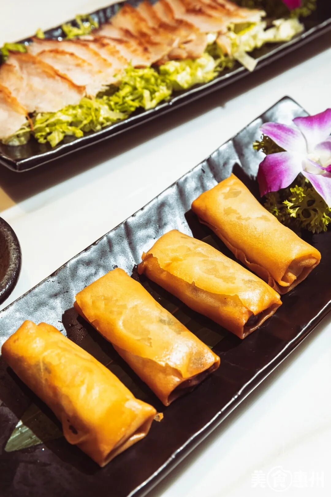 被裹得严严实实的泰式春卷,经过油炸后显得金碧辉煌!咬一口,酥脆爽口,里面包裹着超多配料,油香味十足,很有泰式的风味。