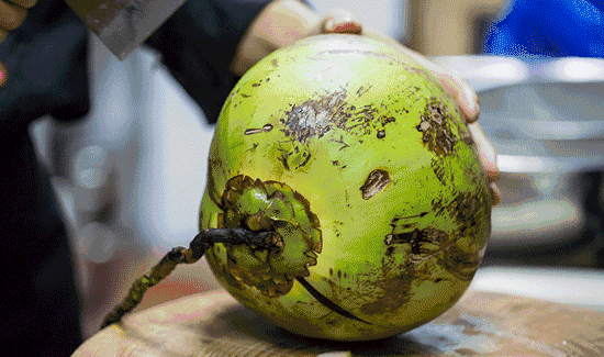 “不加一滴水”,是鉴定一锅椰子鸡好坏的第①步。只用海南飞来的椰子,毫不手软,一份锅底足有三个椰水。