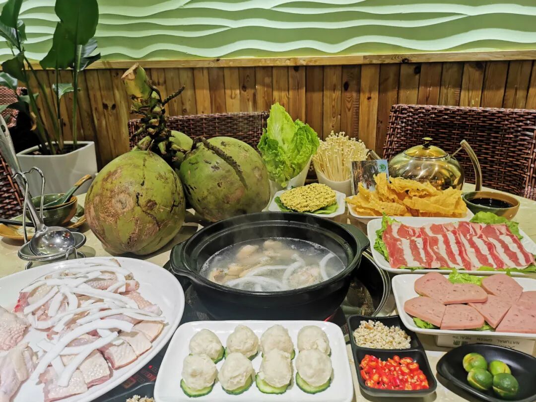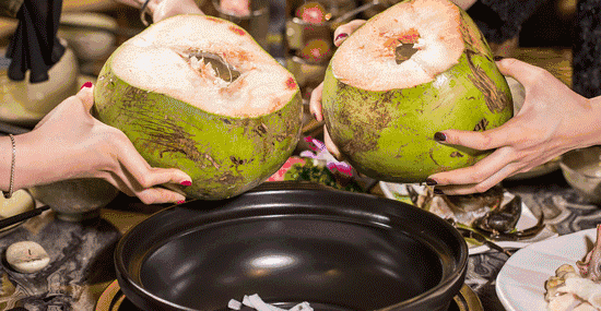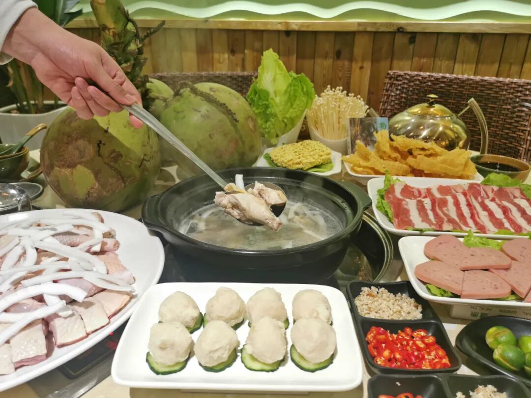 一锅好吃的椰子鸡什么是关键?答案就是清甜天然的汤底,每日到店的海南椰青新鲜椰汁清透甘甜!一个锅底使用2斤的椰子水,光是海南椰青就要用到3个左右,椰肉也是现挖现用香嫩得很!