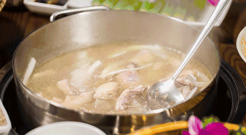 店里每天空运120天走地+30天笼养的文昌鸡,堪称“鸡中小鲜肉”,肉嫩爽滑,皮脆骨酥,保证了汤锅清爽不油腻。