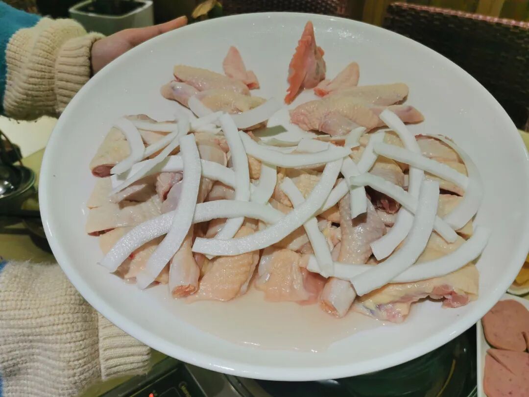 喝完汤吃完鸡最后开始涮菜,这样才能保证每一口都是本初的鲜美,不串味。